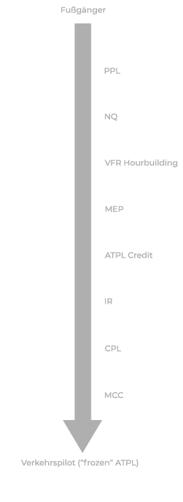 Wie so oft im Leben, fängt auch ein Flugschüler dabei ganz klein an und arbeitet sich Stück für Stück, bis zur Verkehrspilotenlizenz, der , nach oben.