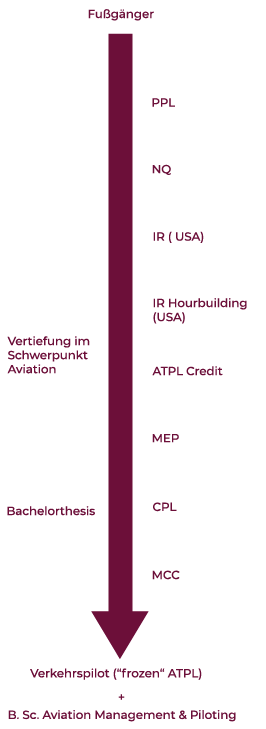 Der von der AQAS akkreditierte Studiengang vereint ein betriebswirtschaftliches Studium mit der Ausbildung zum Verkehrspiloten (m/w) (ATPL(A)), wobei die Pilotenausbildung bereits ca. 50% der erforderlichen Studiengangs-Leistung erbringt (89 CPs).